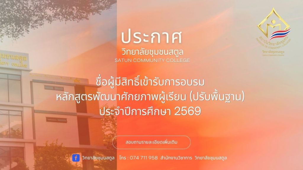 วิทยาลัยชุมชนสตูล จัดอบรมเชิงปฏิบัติการการพัฒนาผลิตภัณฑ์ชุมชนเชิงสุขภาพ ภายใต้โครงการวิจัย “การยกระดับเพื่อหนุนเสริมการท่องเที่ยวเชิงสุขภาพโดยชุมชน พื้นที่อุทยานธรณีโลกสตูล” ณ วิสาหกิจชุมชนสมุนไพรทักษอร ตำบลนาทอน อำเภอทุ่งหว้า จังหวัดสตูล ระหว่างวันที่ 7-8 กุมภาพันธ์ 2569 การอบรมครั้งนี้มุ่งพัฒนาศักยภาพชุมชนด้านการแปรรูปสมุนไพรและการสร้างผลิตภัณฑ์สุขภาพที่มีคุณภาพ ปลอดภัย และสามารถต่อยอดเชิงเศรษฐกิจได้จริง เพื่อรองรับการเติบโตของการท่องเที่ยวเชิงสุขภาพในพื้นที่อุทยานธรณีโลกสตูล